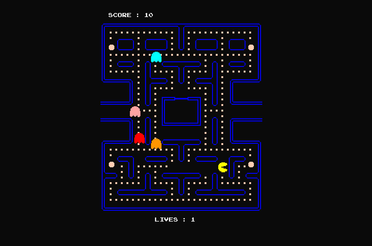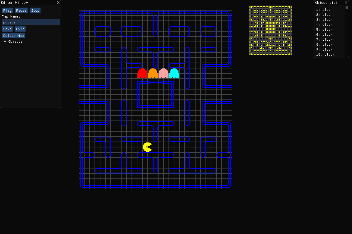 The levels created by the user can be played and the game works just like Pacman, you have to collect all the points to pass the level, having as enemies the ghosts that chase you and being able to make Pacman eat them.