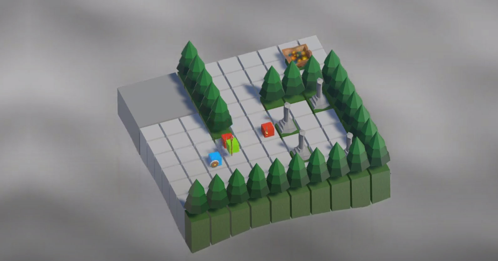 The player controls a series of allies who have different abilities (Tank, Melee, Healer). The game consists of the player showing the allies the path to follow until they reach the goal, along the way the enemies can come out of hiding.